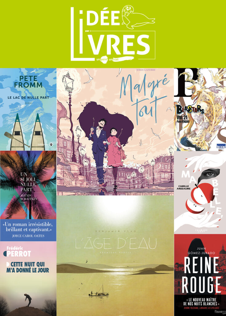 Littérature Un si joli nulle part De Alexis Schaitkin Hiver 1995. Richard et Ellen Thomas, accompagnés de leurs filles de dix-huit et sept ans, Alison et Claire, partent pour des vacances de rêve dans les Caraïbes. La famille Thomas arrive à quatre. Une semaine plus tard, c’est à trois qu’ils quittent ce si joli nulle part… Une maîtrise remarquable pour un premier roman. Construit comme un thriller, on découvre page après page le bouleversement que va vivre une famille venue passer des vacances au bout du monde. Comment la quête de vérité va programmer la vie d’une femme, comment la part de mystère vécue va venir tricoter son histoire, l’embellir voire la sublimer… Une montée en puissance progressive et parfaitement dosée dans ce drame raconté avec finesse, sensibilité et perspicacité par cette jeune auteure à suivre assurément. Cette nuit qui m’a donné le jour de Frédéric Perrot Étienne est dévasté par la mort de son père. Un père qui était un exemple pour lui et formait avec sa mère un couple modèle. Depuis trente ans, le jeune homme n’a jamais douté de leur amour réciproque ni de leur fidélité. Un deuxième roman tout aussi prometteur que son premier. Une belle écriture, simple, efficace et touchante. Pas de thriller cette fois mais un drame. Un jeune homme va réécrire l’histoire de sa vie lorsqu’à la mort de son père il apprend que celui-ci avait une liaison extra conjugale pendant des années… avec un homme. Exit le modèle du couple parental parfait, exit l’image d’Épinal étouffante. On découvre avec lui la vie de son père et son amour impossible, ses secrets, ses questionnements, sa femme et son fils avec qui il a choisi finalement de rester. D’une façon sensible et attachante, on suit cette histoire qui ne ressemble à aucune autre et qui pourtant n’a rien d’extraordinaire. À part peut-être cette poésie, cette folie et surtout cet optimiste, ce bonheur à tout prix qui en émanent. Beastars de Paru ITAGAKI Point de départ d’une intrigue prenante, l’institut Cherryton où herbivores et carnivores vivent dans une harmonie “de façade”. La consommation de viande y est strictement interdite et les dortoirs sont séparés en fonction des régimes alimentaires. Mais pour des animaux anthropomorphiques, l’instinct est souvent primaire et le drame n’est pas loin. Si l’histoire débute par le meurtre d’un alpaga mettant en effervescence tout le lycée, le reste de l’histoire se concentre sur les relations de Legoshi, un hybride de loup et de varan de Komodo aussi mortel que profondément gentil. Mal à l’aise dans son corps d’ultra prédateur, il tombe amoureux d’une lapine naine qui lui arrive au genou. Entre amitiés improbables, amours impossibles et quête utopique d’égalité, Beastars se laisse lire sans difficulté une fois plongé dans son univers, ce qui m’a pris un peu de temps. La réelle critique de la société et de ses vices cachés exposée dans ce manga prendra fin en juin prochain dans l’ultime volume de cette série. Le Lac de nulle part de Pete Fromm Cela fait bientôt deux ans que Trig et Al, n’ont plus de contact avec leur père. Et voilà qu’il réapparaît dans leur vie et réclame “une dernière aventure”. Beaucoup aimé. L’histoire de deux jumeaux de 27 ans qui partent avec leur père en canoë sur des lacs au Canada pour raviver leurs souvenirs d’enfance, leurs petits moments de bonheurs… Et puis, tout dérape, le père semble perdu, psychologiquement et physiquement. Une nuit, il disparaît et laisse ses enfants seuls alors que la neige tombe sans interruption et que la glace les emprisonnent. S’ensuit une épopée épique et une survie de chaque instant. Une relecture de leur histoire, des révélations, beaucoup d’amour et de tendresse, une très belle relation entre le frère et la sœur. On est passionné par ce récit réaliste et émouvant. Pete Fromm au meilleur de sa forme. L’âge d’eau de Benjamin Flao Nous sommes en France, l’eau est montée et il n’y aura pas de décrue. Face à ce nouveau phénomène, beaucoup de populations sont déplacées et survivent comme elles peuvent sur les terres émergées ou apprennent “à flotter”. Un texte d’une grande force qui accompagne un trait d’apparence grossière mais qui s’harmonisent magnifiquement. Surtout les quelques planches de peinture qui émaillent la bd, superbes. Des personnages hauts en couleurs et terriblement attachants dans ce monde post apocalyptique. Une belle réflexion sur la liberté face à la peur et la sécurité. Un petit bémol cependant avec les élucubrations du fameux chien bleu qui laissent dubitatif…On attend la suite avec impatience… REINE ROUGE De Juan Gómez-Jurado Antonia Scott est spéciale. Très spéciale. Elle n’est ni flic ni criminologue. Elle n’a jamais porté d’arme ni d’insigne, et pourtant, elle a résolu des dizaines d’affaires criminelles. Avant de tout arrêter. Premier tome d’une trilogie annoncée. On se laisse embarquer avec beaucoup de plaisir dans cette sombre aventure madrilène. Jon, un flic homo et costaud (mais pas gros, comme nous le précise l’auteur), fait la connaissance de Antonia Scott. Cette dernière a subi des expériences (louches) pour devenir encore plus douée qu’elle ne l’était. Alors qu’elle travaillait dans l’ombre pour le gouvernement, elle décide de tout plaquer suite à un drame personnel. Jon la persuade de reprendre le flambeau pour débusquer un certain Ezequiel qui enlève et tue des jeunes (tous enfants de personnes très riches). Le duo fonctionne à merveille, suspens et humour sont au rendez-vous pour notre plus grand plaisir. Ma belle de Camille Anseaume L’histoire d’une femme qui est amoureuse d’un homme séparé de son ex (une femme sublime) et a la garde alternée de sa fille de 7 ans, Blanche tout aussi sublime. Louise devient alors LA Belle mère